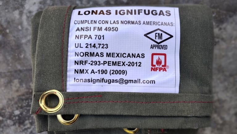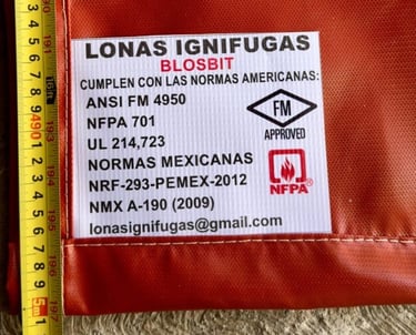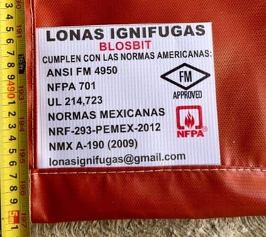 Lonas Ignifuga en México - Ciudad de México - CDMX - 5574124237 - Entrega Inmediata - Envíos a todo México - Lona Ignifuga para soldar, resiste altas temperaturas, escoria de metal fundido, salpicadura y chispa de soldadura - Lona Ignifuga Certificada - norma ANSI FM 4950 - norma NFPA 701 - norma UL 214, 723